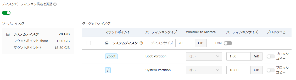 ホスト名やIPアドレスが変更されていることを確認できます。また、パーティションもだいぶ変わっています。また、これは移行によって変わってしまったわけではありませんが、移行のためにSELinuxを無効にしていたので、移行されたイメージでももちろん無効のままです。この点は注意が必要かもしれません。